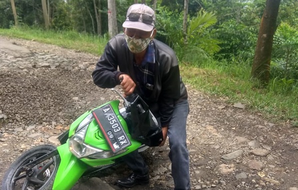 Saya berharap karena ini status jalannya milik kabupaten, kami mohon agar segera diperbaiki, kelihatannya tak jauh dari tempat saya terjatuh ada tumpukan material batu,mudah mudahan segera di perbaiki, Ujar Sumardi.