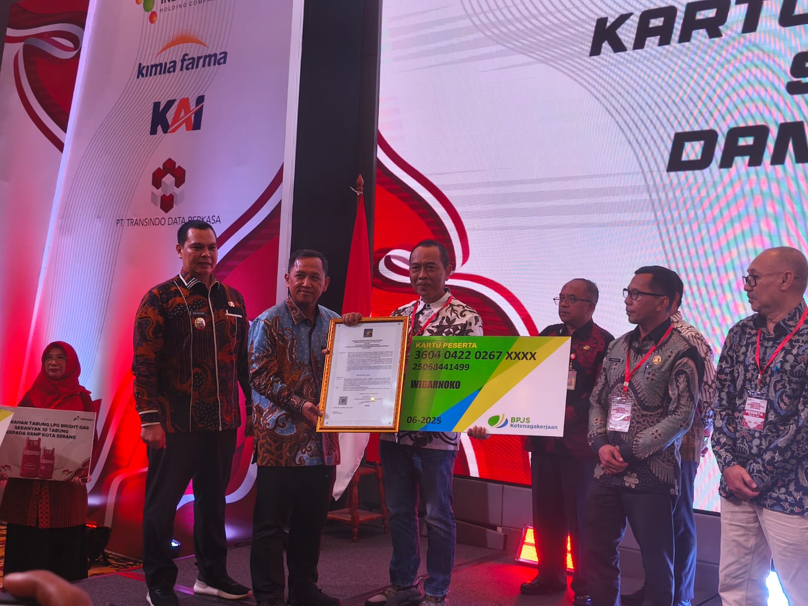 Adapun perlindungan tersebut ditandai dengan penyerahan secara simbolis kartu kepesertaan BPJS Ketenagakerjaan kepada pengurus Koperasi Kelurahan Merah Putih pada saat pelaunchingan Koperasi Kelurahan Merah Putih Kota Serang, bertempat di Hotel Aston Kota Serang, Kamis (24/7).