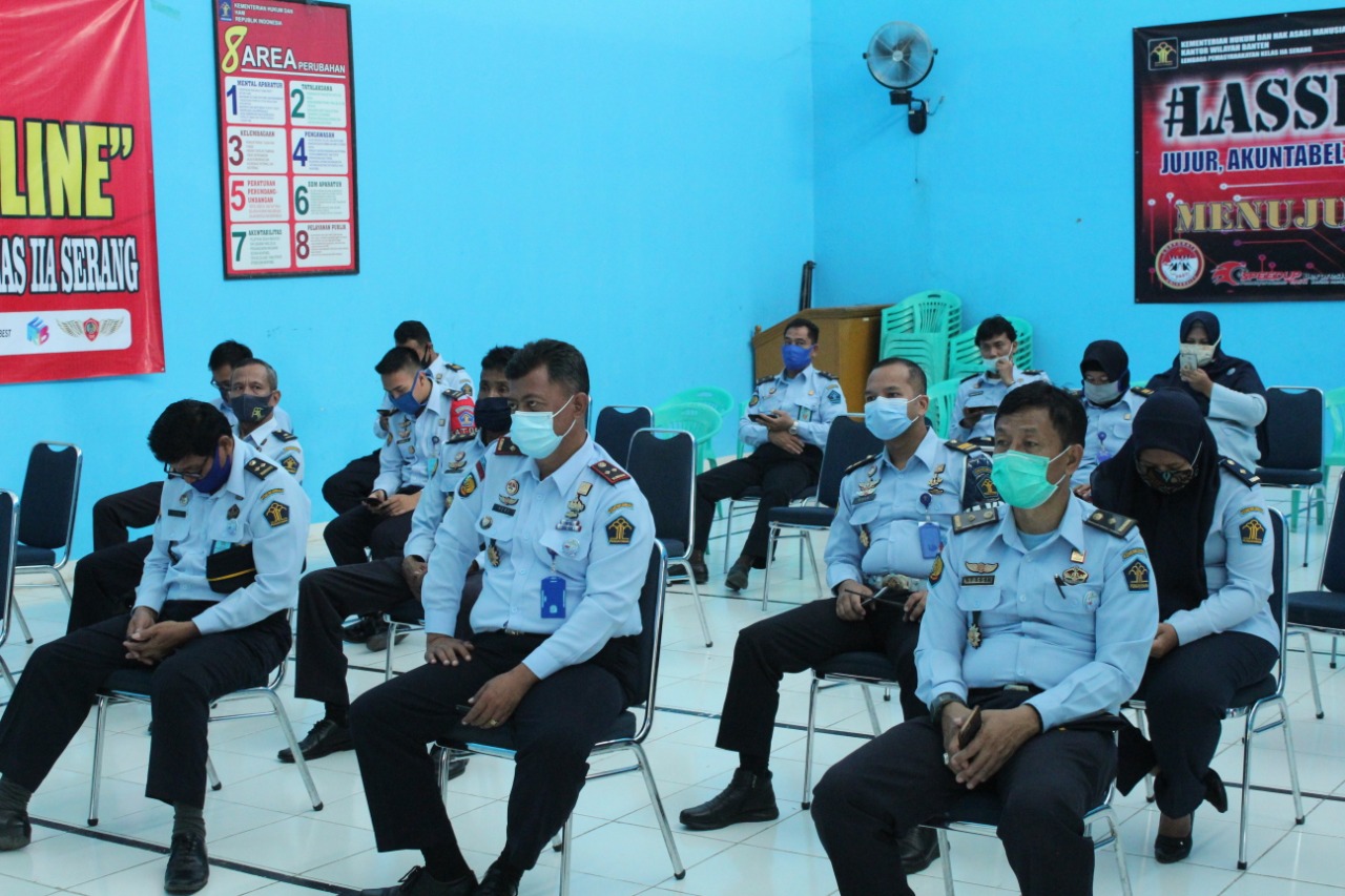 SERANG – Melalui Video Conference yang berpusat di Direktorat Jenderal Pemasyarakatan, Jajaran Lembaga Pemasyarakatan Kelas IIA Serang mengikuti arahan menegenai penanganan dan penanggulangan Covid-19 yang dilaksanakan di Aula Lapas Serang. Senin (24/08)