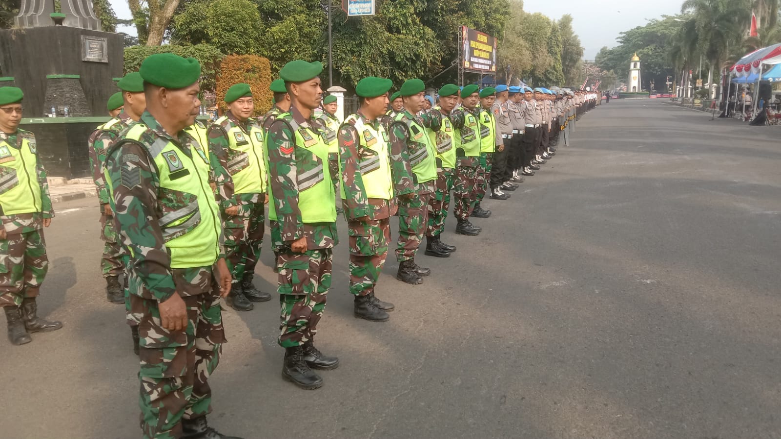 Anggota Kodim 0601/Pandeglang ikuti Apel Gelar Pasukan Operasi Mantap Praja 2024 yang dilaksanakan di depan halaman Pendopo Kabupaten Pandeglang, Sabtu (24/08/24)