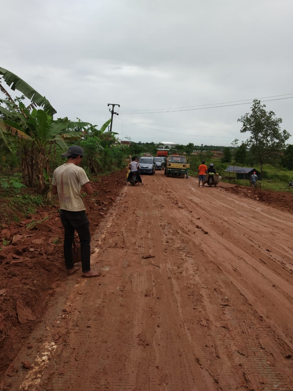 “Jalan beton yang tadinya mulus kini sudah rusak, licin dan berlumpur yang membahayakan semua pengguna jalan, bahkan hari ini saja (kemarin-red) sudah tiga orang yang dilarikan ke klinik gara-gara terjatoh akibat jalan dipenuhi lumpur,” ungkap Budi.