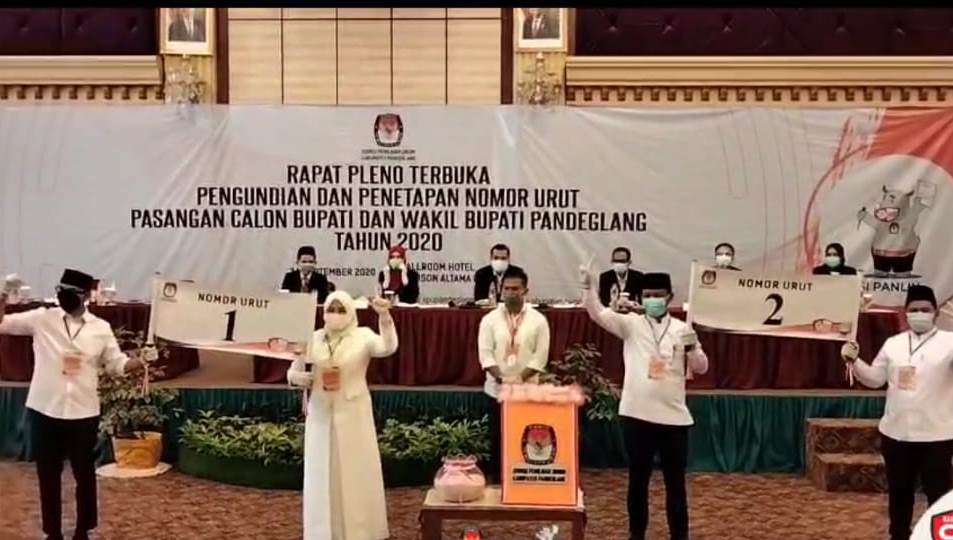 PANDEGLANG – Pasangan Calon (Paslon) Bupati dan Wakil Bupati Pandeglang, Irna Narulita yang berpasangan dengan Tanto Warsono Arban (Intan), serta Paslon Bupati dan Wakil Bupati Pandeglang, Thoni Fathoni Mukhson dengan Miftahul Tamamy (Toat), akhirnya resmi kantongi nomor urut peserta dalam Pilkada Pandeglang 2020.