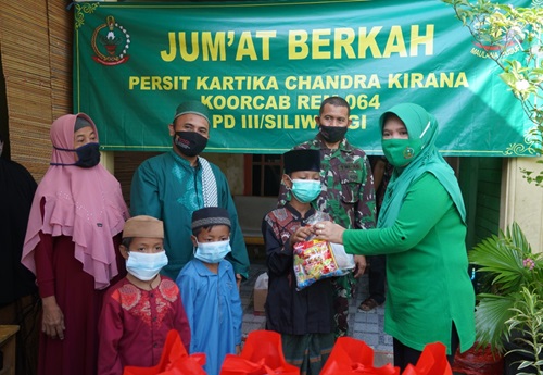KOTA SERANG – Ketua Persit KCK Koorcab Rem 064 PD III/Siliwangi Ny. Fien Yunianto bersama pengurus melaksanakan kegiatan Jum’at Berkah “ bertempat di Yayasan Ibnu Abbas Al-Mujahidin yang beralamat di Kampung Angsana RT 02/06 Kelurahan Kasemen Kecamatan Kasemen Kota Serang Provinsi Banten, Jum’at (24/09/2021) Dikutip Bungasbanten.id – Group siberindo.co