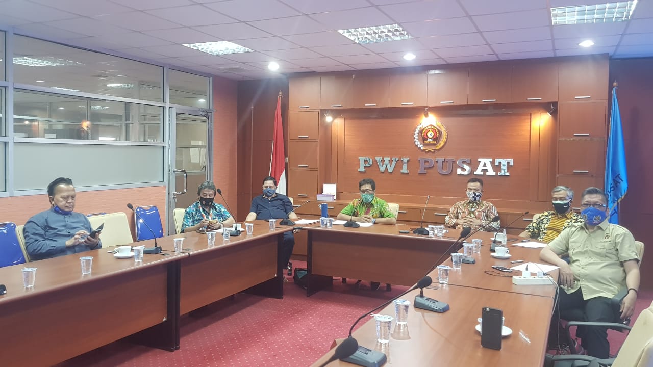 dan Direktur Lembaga Survei (Indodata) Danis Tri Saputra Wibono, Jumat (23/10) siang, di Sekertariat PWI Pusat Lantai 4 Gedung Dewan Pers.