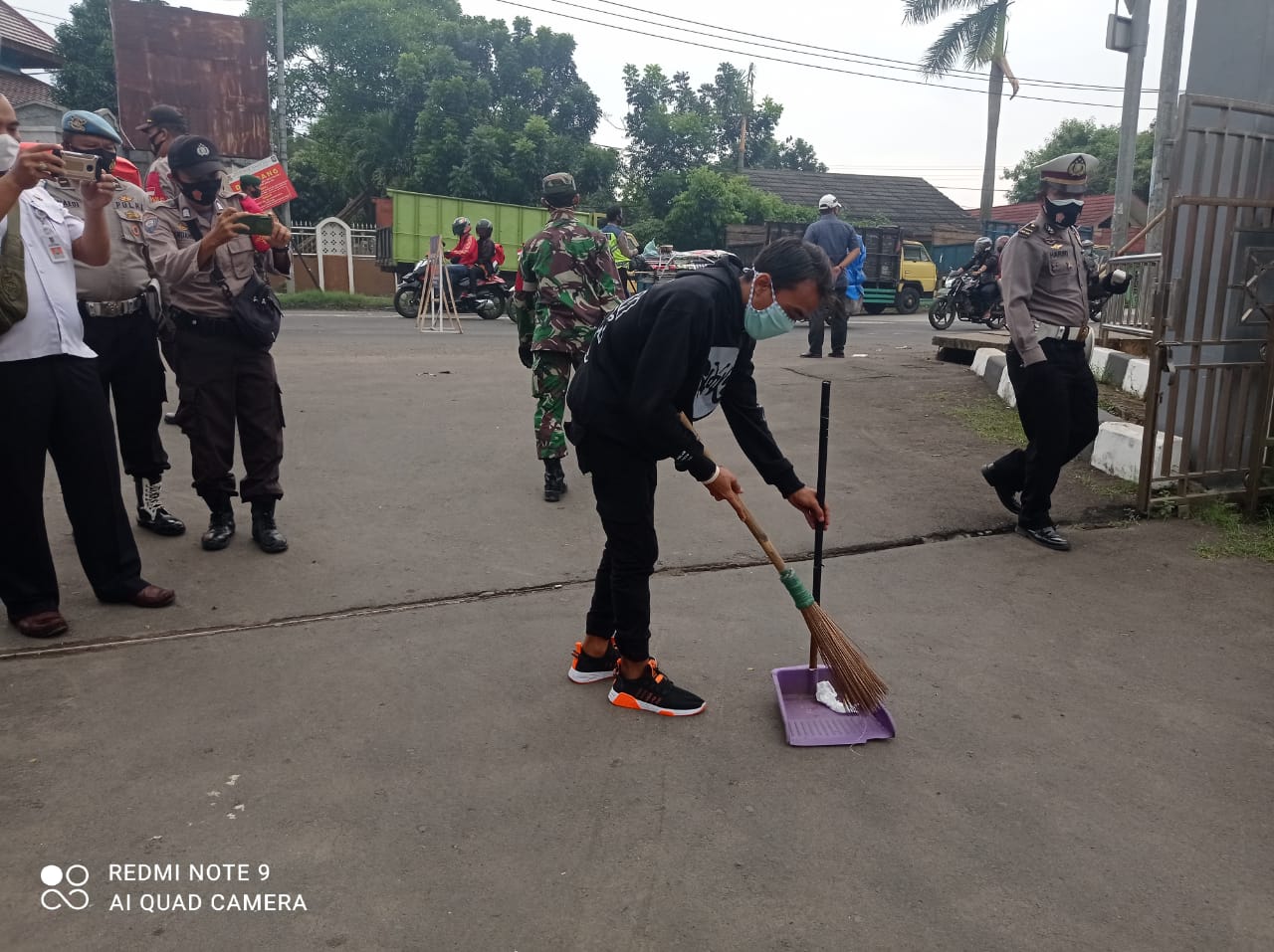 “Dalam operasi yustisi hari ini tim Satgas gabungan Koramil 05/Balaraja berhasil menjaring warga yang melanggar protokol kesehatan tidak memakai masker. Warga langsung di berikan sanksi oleh Satpol PP berupa pus up dan membersihkan jalan umum,” ujarnya.