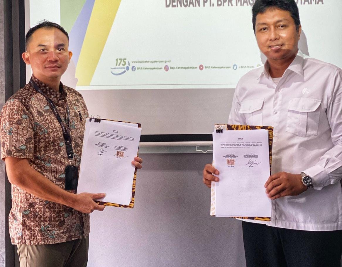 Penandatanganan dilakukan oleh Alpian selaku Kepala Cabang BPJS Ketenagakerjaan Tangerang Batuceper dan Edy Johan selaku Direktur Utama PT BPR Magga Jaya Utama (Bank Maju).