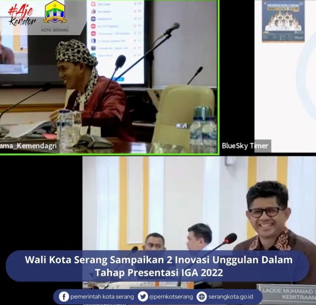 SERANG – Wali Kota Serang Syafrudin, memamparkan 2 inovasi kepada Tim Penilai Innovative Goverment Award (IGA) 2022 di Ruang Sidang Utama Kemendagri (23/11).