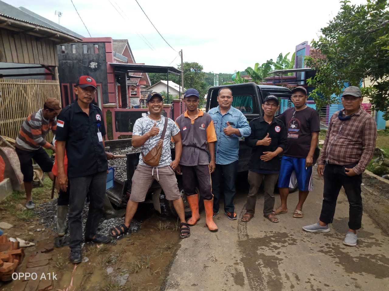 Bantuan berupa semen tersebut di distribusikan ke 3 orang warga yang rumahnya rusak akibat longsor, yaitu Darna (Kampung Bantarwaru, Desa Muncang), titik kedua di Kampung Cimengger, Desa Mekarwangi dan Marnah (Kampung Cimengger)