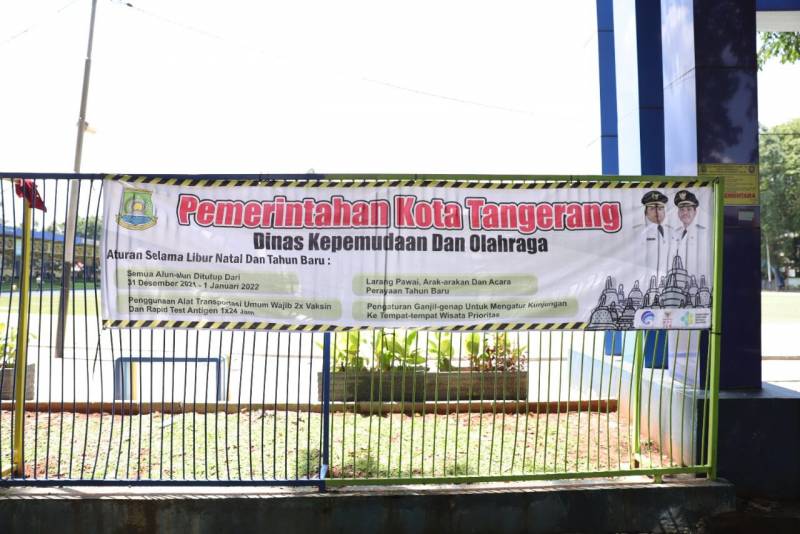 SIBERINDO.CO, KOTA TANGERANG-Berdasarkan Surat Edaran Walikota Tangerang No: 180/6032-Bag. Hkm/2021 tentang Pemberlakukan Pembatasan Kegiatan Masyarakat (PPKM) Level 1, yang berlaku mulai 24 Desember hingga 1 Januari. Pemkot Tangerang melalui Dispora dan Disbudparman akan menutup sementara semua Alun-Alun dan Taman Tematik di Kota Tangerang, pada 30 Desember hingga 1 Januari mendatang.