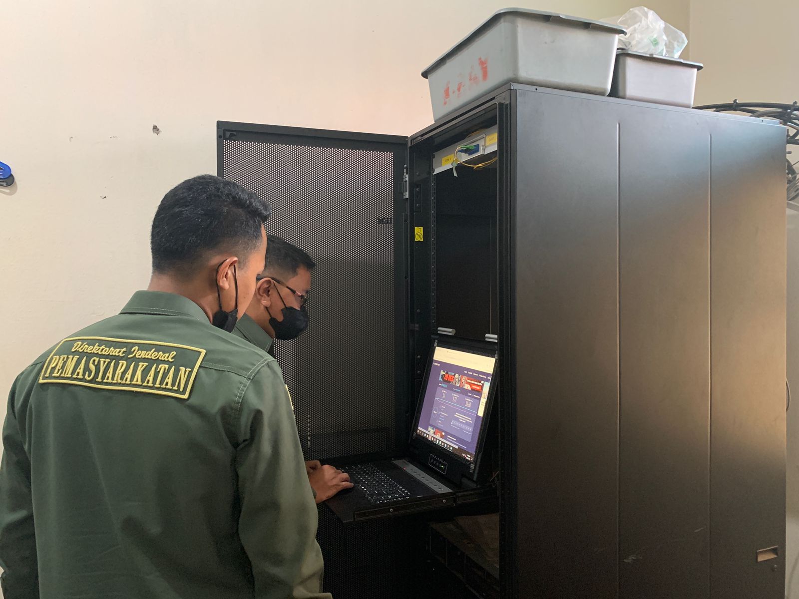 TANGERANG – Tim Teknologi Informasi dan Kerjasama Direktorat Jenderal Pemasyarakatan melaksanakan monitoring untuk memeriksa segala sarana dan prasarana perangkat icon plus, self service, ruang server yang terkena dampak dari angin kencang pada hari kamis, tanggal 23/12/2021 di Lapas Perempuan Kelas IIA Tangerang. Jumat (24/12/2021).