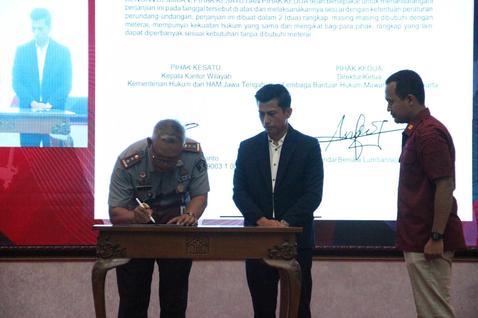 Kakanwil Kemenkumham Jateng, Tejo Harwanto mengatakan bahwa Pemberian bantuan hukum merupakan amanah dari Undang-Undang Nomor 16 Tahun 2011 tentang Bantuan Hukum, dimana negara menjamin hak konstitusional setiap orang untuk mendapatkan pengakuan, jaminan, perlindungan dan kepastian hukum yang adil serta perlakuan yang sama dihadapan hukum sebagai sarana perlindungan Hak Asasi Manusia.