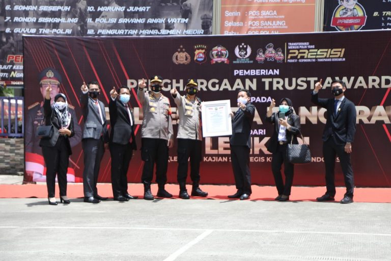 TANGERANG – Polres Tangerang Polda Banten menyabet penghargaan Trust Award dari Lembaga Kajian Strategis Kepolisian Indonesia (Lemkapi), Rabu (24/2/2021).