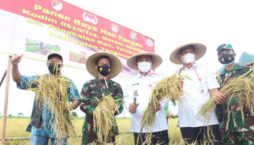 Komandan Korem 052/Wkr, Brigjen TNI Purwito Hadi Wardhono mengatakan, panen kali ini untuk meningkatkan ketahanan pangan nasional di tengah pandemi Covid-19 karena kegiatan panen ini merupakan wujud nyata untuk memberikan keyakinan bagi masyarakat Kabupaten Tangerang bahwa kita siap membantu memenuhi kebutuhan pangan walau dihadapkan dengan wabah COVID-19.