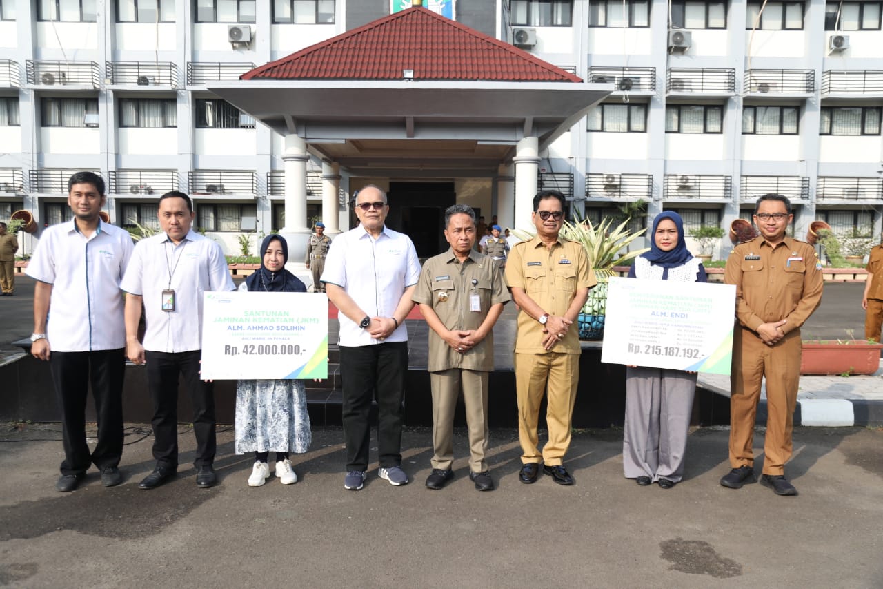 Adapun penyerahan santunan tersebut diserahkan langsung oleh PJ Walikota Serang Yedi Rahmat bersama Kepala Kantor Cabang BPJS Ketenagakerjaan Cabang Serang Raya Ahmad Fatoni usai melakukan apel pagi di halaman Kantor Walikota Serang. Senin, (25/03).