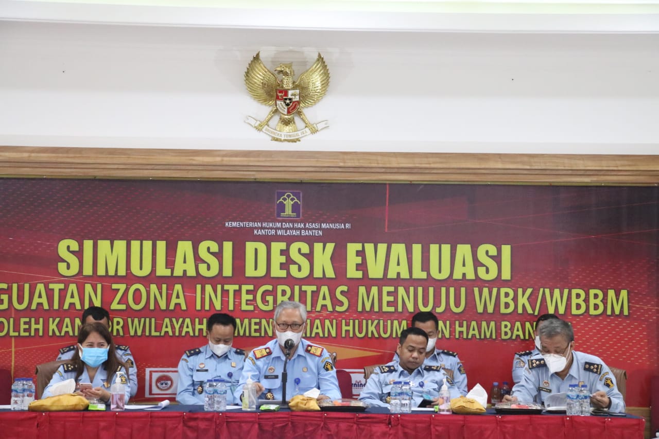Siberindo.co -Jelang Pelaksanaan Evaluasi Pembangunan Zona Integritas oleh Tim Penilai Internal (TPI) pada 31 Mei hingga 04 Juni mendatang, Lembaga Pemasyarakatan (Lapas) Kelas IIA Serang ikuti kegiatan Simulasi Desk Evaluasi Pembangunan ZI bagi Satuan Kerja yang diselenggarakan oleh Kantor Wilayah (Kanwil) Kementerian Hukum dan Hak Asasi Manusia Banten. Selasa (25/05).