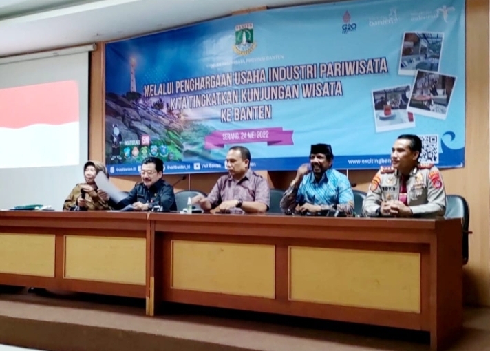 Siberindo.co – Dalam rangka meningkatkan jumlah kunjungan wisatawan yang berkelanjutan serta mengembangkan sektor pariwisata yang kompetitif dan berdaya saing, Dinas Pariwisata Provinsi Banten menggelar Advokasi Pedoman Penghargaan Usaha Industri Pariwisata di Aula Rapat Dinas Pariwisata Provinsi Banten. Selasa, 24 Mei 2022.