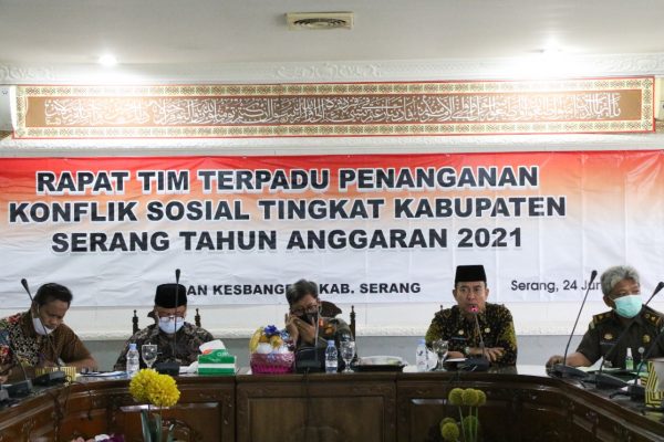 Berdasarkan hasil Rapat Tim Terpadu Penanganan Konflik Sosial Tingkat Kabupaten Serang di Aula KH Syam’un pada Kamis (24/6/2021) terdapat beberapa poin yang menjadi bahan perhatian oleh Badan Kesatuan Bangsa dan Politik (Badan Kesbangpol) diantaranya saat selesai diadakannya seleksi tes tertulis untuk desa yang memiliki bakal calon kepala desa lebih dari lima.