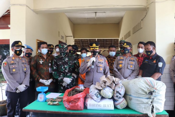 Kapolres menyampaikan saat tersangka digeledah oleh petugas maka ditemukan 13 paket kecil ganja, satu unit handpohone merek Oppo dan uang tunai Rp 112, 000.