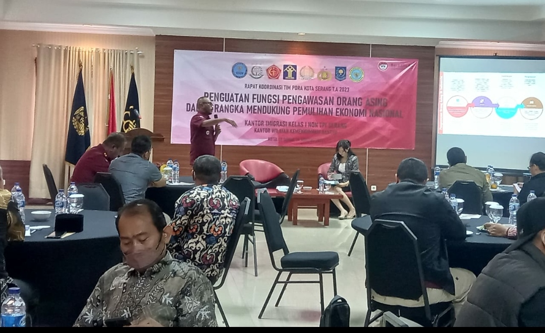 Kepala Sub Bidang Intelijen Divisi Keimigrasian Kanwil Kemenkumham Banten, Arfa Yudha Indriawan mengatakan, bahwa kegiatan hari ini adalah rapat koordinasi tim pengawasan orang asing di Kota Serang.