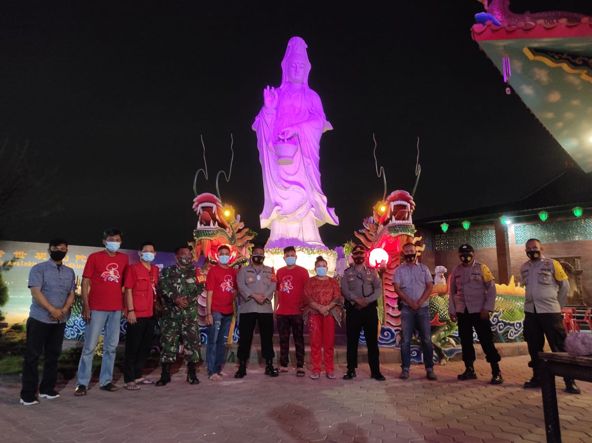 “Perhatikan disiplin protokol kesehatan seperti tamu wajib menggunakan masker, cek suhu tubuh dan cuci tangan sebelum masuk ke Vihara serta jaga jarak,” katanya, didampingi Panit 2 Binmas, Ipda Eko Yulianto, Babinsa dan Binamas.