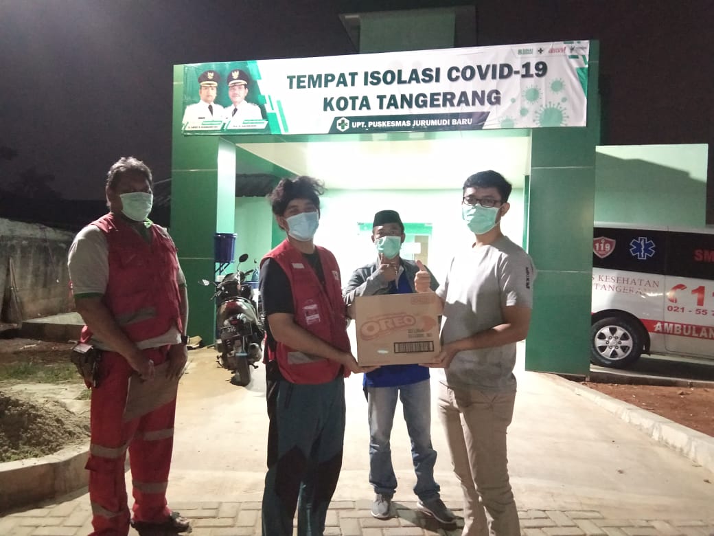 Bantuan ini distribusikan melalui relawan PMI Kota Tangerang ke lokasi-lokasi tempat isolasi penyitas Covid-19 seperti di puskesmas dan Lapangan Ahmad Yani.