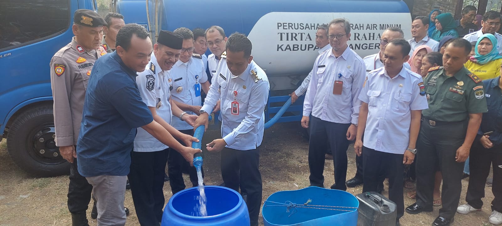 Penyaluran bantuan air bersih tersebut hasil kolaborasi Persatuan Wartawan Indonesia (PWI) Tangerang bersama Perumdam Tirta Kerta Raharja (Perumdam TKR) dan Pemerintah Kabupaten Tangerang.