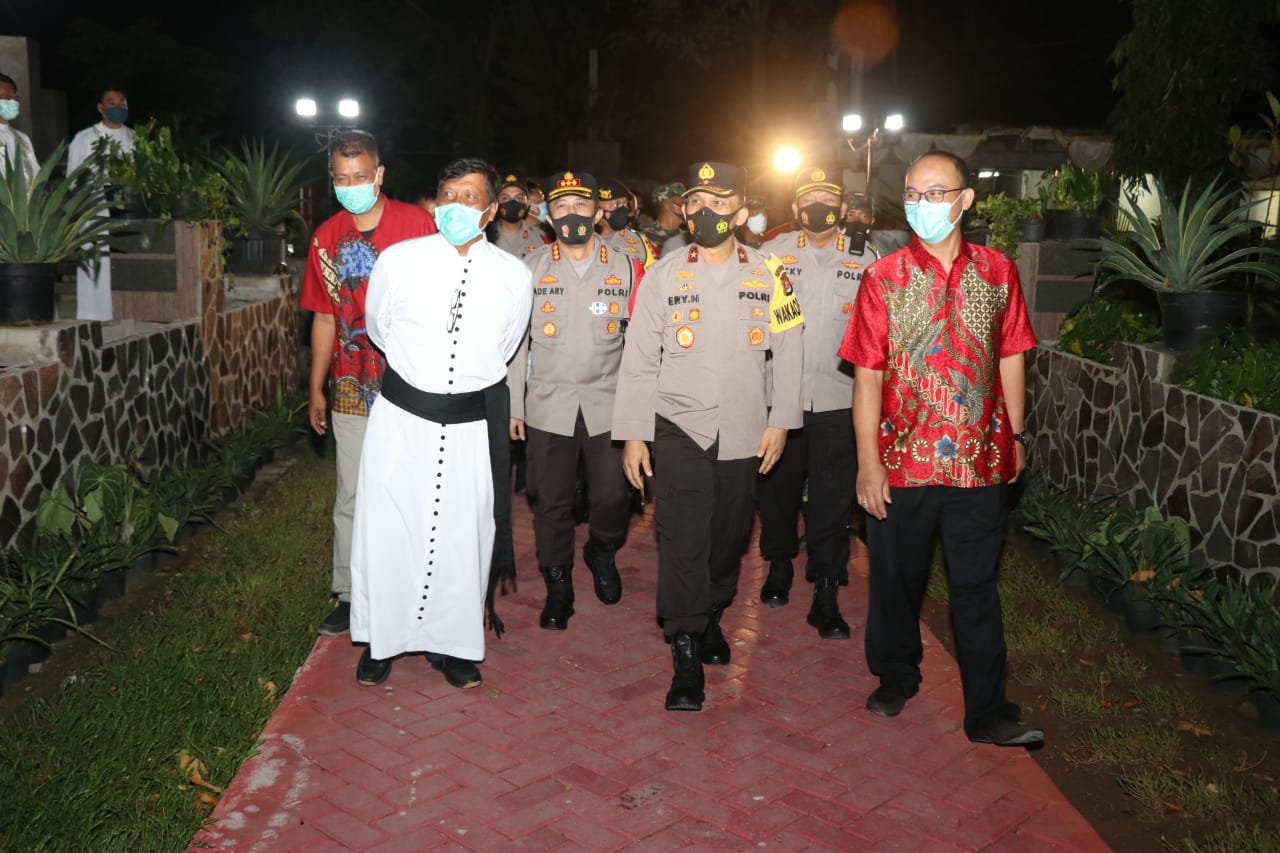Siberindo.co – Kapolresta Tangerang Kombes Pol Ade Ary Syam Indradi mendampingi Wakapolda Banten Brigjen Pol Ery Nursatary saat mengunjungi gereja guna memastikan keamanan Misa Natal, Kamis (24/12/2020).