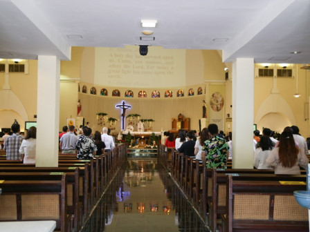 Begitu pun di dalam ruangan gereja, jarak antar jemaat juga telah diatur.