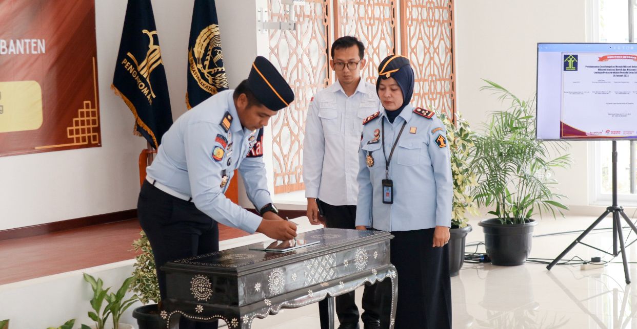 TANGERANG – Lapas Pemuda Kelas IIA Tangerang terus berkomitmen dalam Pelaksanaan Pembangunan Zona Integritas guna terwujudnya “Good Governance dan Clean Government”. Komitmen ini ditandai dengan melakukan Pencanangan Pembangunan Zona Integritas dan Penandatanganan Komitmen Bersama yang digelar oleh Kantor Wilayah Kemenkumham Banten di Lapas Perempuan Kelas IIA Tangerang, Kamis (26/1) Siang.
