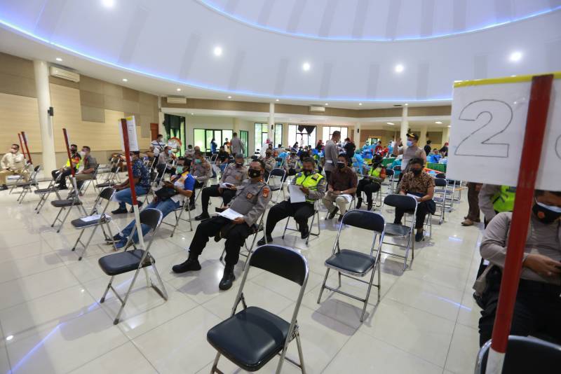 “Semua anggota kami wajibkan, kecuali petugas yang belum memenuhi kriteria persyaratan, semoga selesai di hari ini sehingga bisa bergilir dengan petugas pelayanan publik lainnya,” tukas