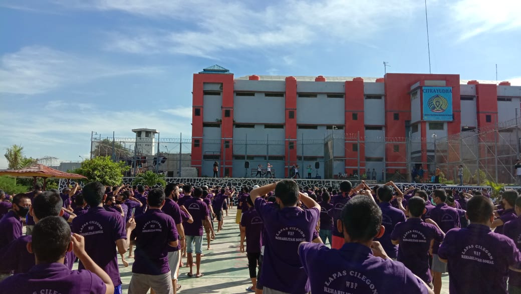 Dipagi yang cerah, Jumat (26/03/2021), Lembaga Pemasyarakatan Kelas IIA Cilegon kembali menggelar senam rutin terhadap Warga Binaan Pemasyarakatan Peserta Rehabilitasi Lapas Cilegon.