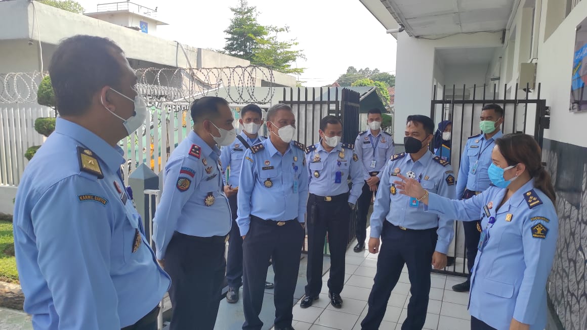 Pimti Pratama Kantor Wilayah Kementerian Hukum dan Hak Asasi Manusia Banten Menyambangi Lapas Pemuda Kelas IIA Tangerang guna melakukan Monitoring dan Evaluasi Pembangunan Zona Integritas Menuju Wilayah Bebas dari Korupsi (WBK) dan Wilayah Birokrasi Bersih dan Melayani (WBBM). (26/04).