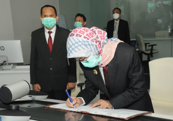 Turut menyaksikan Bupati Lebak Iti Octavia Jayabaya didampingi Wakil Bupati Lebak Ade Sumardi, Sekretaris Daerah, serta Para Asisten Daerah Kabupaten Lebak secara daring melalui platform zoom meeting.” Bertempat di Lebak Data Centre, Senin (26/04/2021) Dikutip Bungasbanten.id – Group siberindo.co