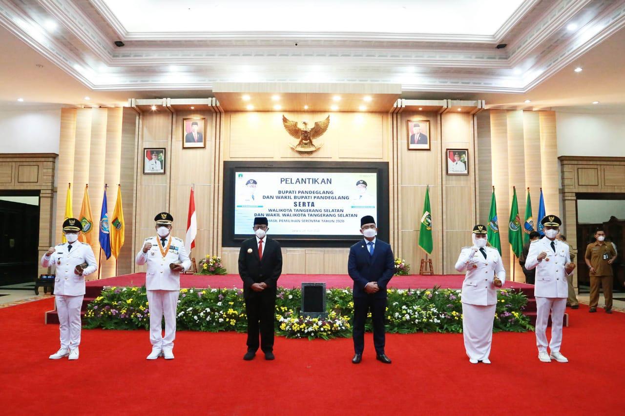 Wahidin Halim (WH), selaku Gubernur Banten melantik H. Benyamin Davnie dan H. Pilar Saga Ichsan sebagai Walikota dan Wakil Walikota Tangerang Selatan, serta Hj. Irna Narulita dan H. Tanto Warsono Arban sebagai Bupati dan Wakil Bupati Pandeglang, masa jabatan 2021-2026, sesuai SK yang ditetapkan di Jakarta pada tanggal 29 Maret 2021.