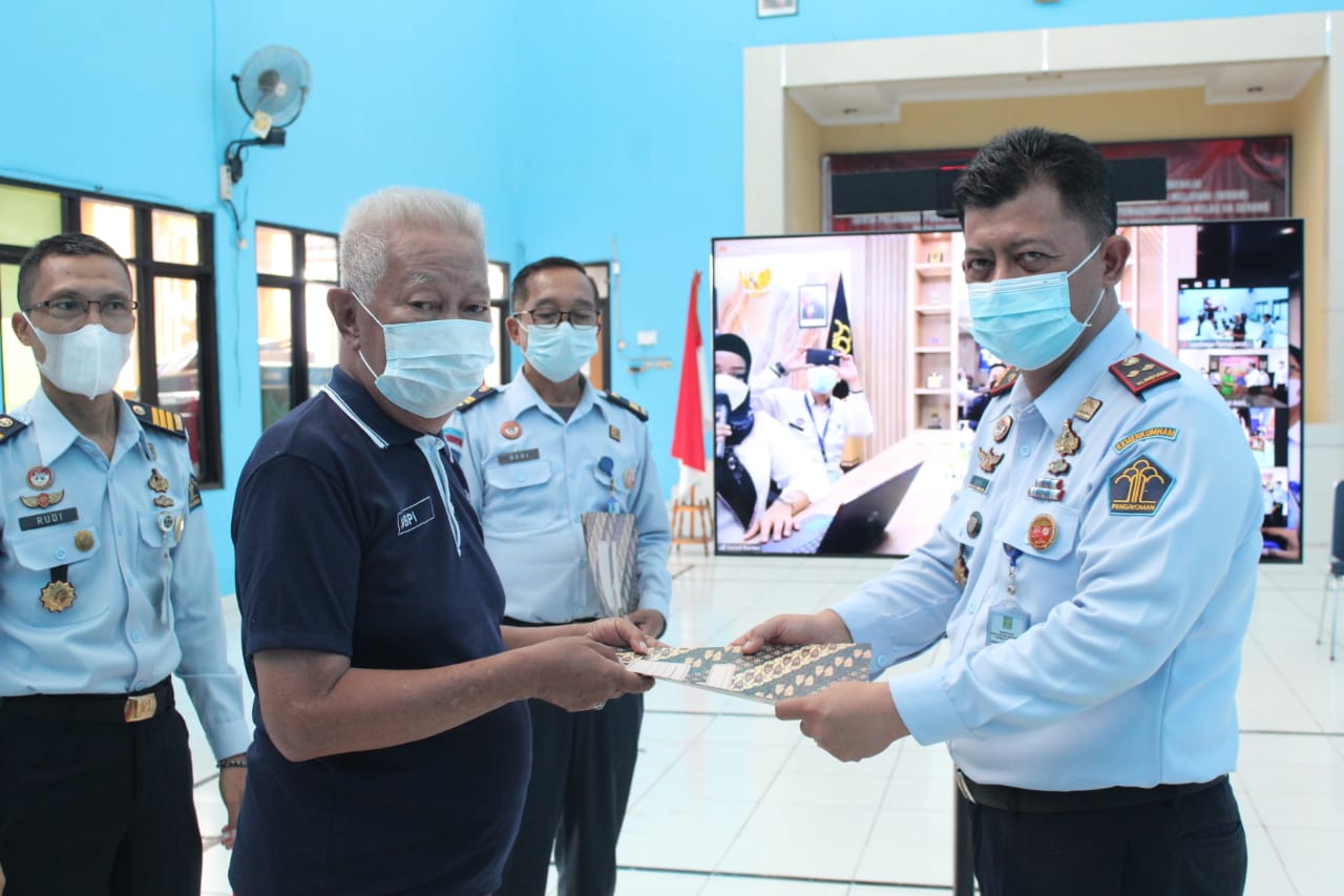 Kepala Lapas Kelas IIA Serang, Heri Kusrita menyerahkan Remisi Khusus Hari Raya Waisak Tahun 2021 secara simbolis kepada perwakilan Warga Binaan Lapas Serang yang mendapatkan Remisi Khusus Hari Raya Waisak.