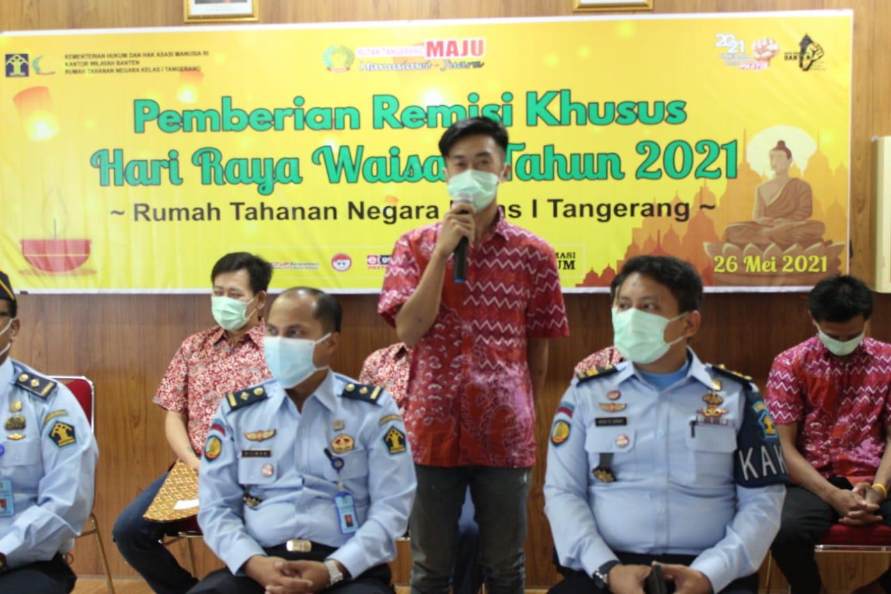 TANGERANG – Pemberian RK Waisak Tahun 2021 di Kanwil Kemenkumham Banten sebanyak 153 orang, 7 orang diantaranya dari Rutan Tangerang. Kegiatan pemberian remisi yang berpusat di Kantor Wilayah Kemenkumham Banten dilakukan serentak secara virtual oleh seluruh UPT Pemasyarakatan Kanwil Banten. Rabu 26 Mei 2021