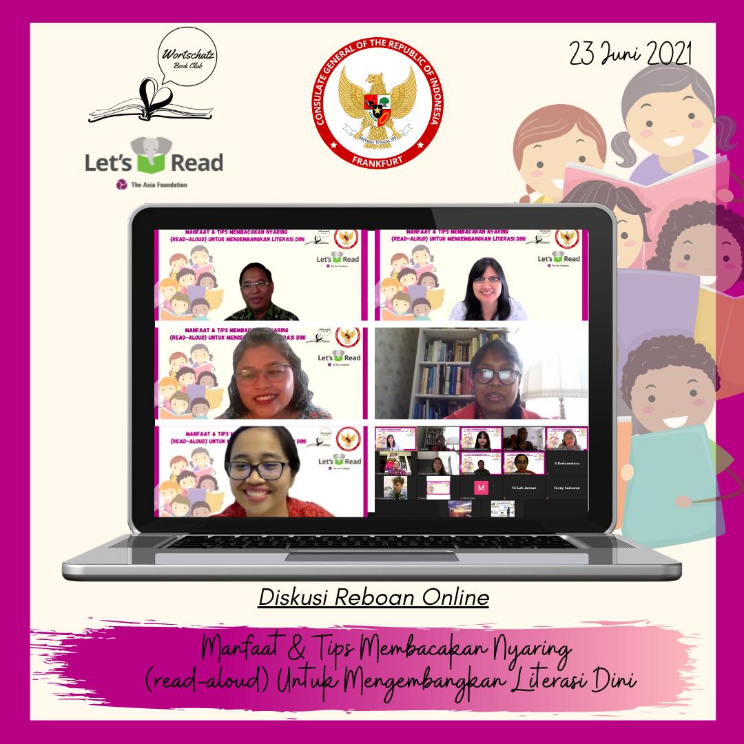 Frankfurt, Jerman – KJRI Frankfurt bekerja sama dengan Wortschatz Book Club (sebuah kanal Youtube yang menampilkan video buku-buku berbahasa atau tentang Indonesia di Jerman) telah menyelenggarakan Diskusi Reboan berjudul ‘Manfaat dan Tips Membacakan Nyaring (Read-Aloud) untuk Mengembangkan Literasi Dini’ (23/06/2021).