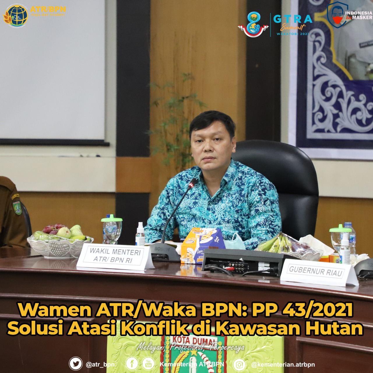 Dumai – Wakil Menteri Agraria dan Tata Ruang/Wakil Kepala Badan Pertanahan Nasional (Wamen ATR/Waka BPN), Surya Tjandra mengunjungi dan aktif berdiskusi dengan pemimpin daerah terdampak, salah satunya dengan Wali Kota Dumai, Selasa (22/06/2021).