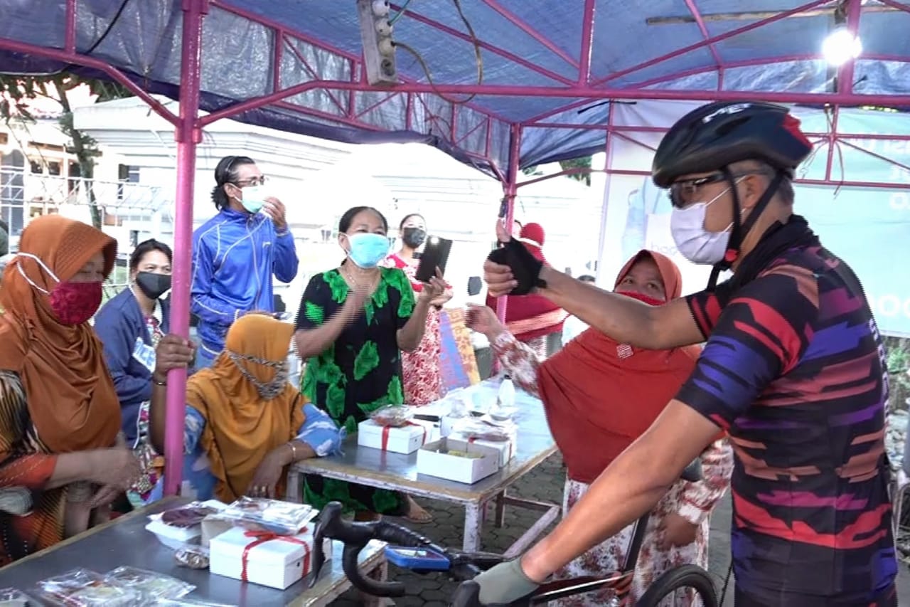 SEMARANG – Gubernur Jawa Tengah Ganjar Pranowo memborong dagangan milik pedagang kaki lima (PKL) untuk dibagikan kepada warga sekitar. Momen itu terjadi saat Ganjar gowes pagi keliling Kota Semarang, Minggu (25/7/2021).