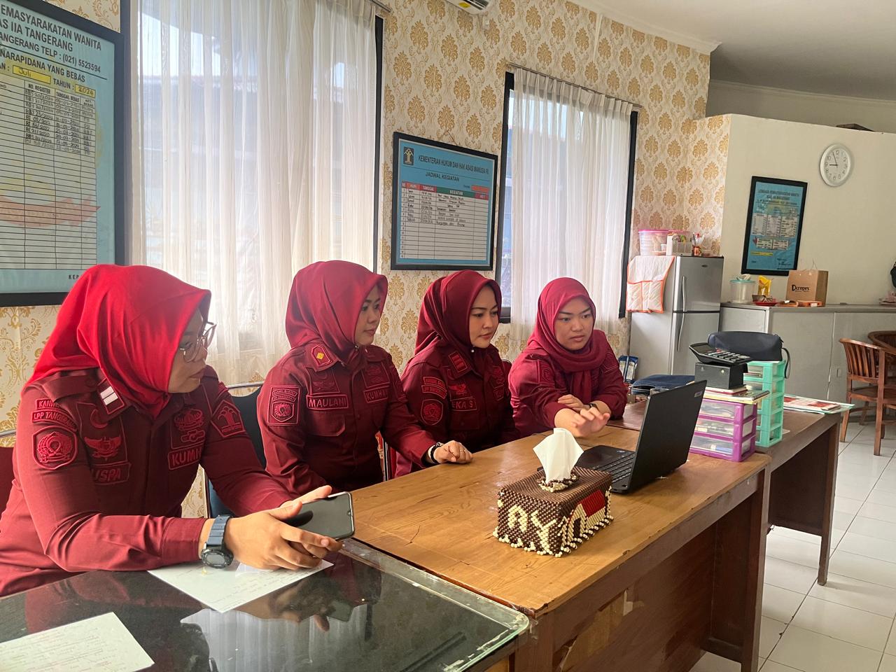 Tempat pelaksanaan kegiatan secara Virtual di Ruang Bimpas Lapas Perempuan Kelas IIA Tangerang yang diikuti oleh Tim Rehabilitasi Sosial Lapas Perempuan Kelas IIA Tangerang