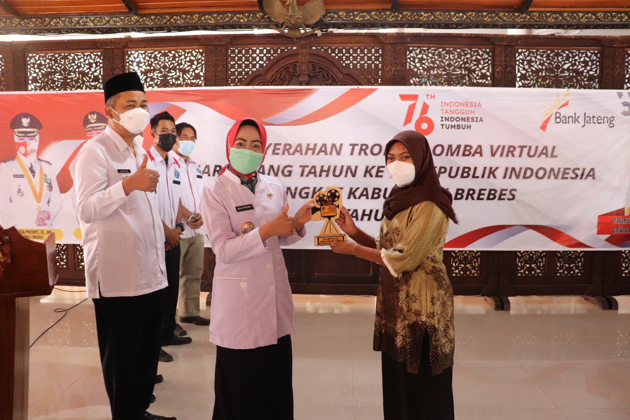 Hal itu disampaikan oleh Bupati Brebes, Idza Priyanti, saat menyerahkan hadiah bagi pemenang Lomba Seni Nasionalisme Film Pendek bagi Pelajar dan Pemuda, Lomba Kreasi Olahraga Di Rumah Saja, dan Lomba Brebes E-Sport Competition, di Pendapa Brebes, Rabu (25/8/2021).