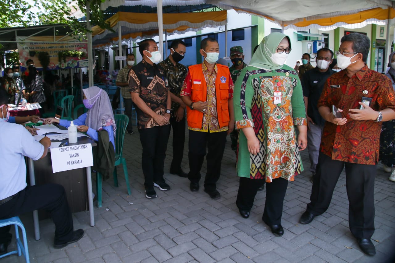 Hal tersebut disampaikan Bupati Sragen, Kusdinar Untung Yuni Sukowati saat melakukan pantauan vaksinasi bagi pekerja PT Kenaria dan PT DMST 8 di Puskesmas Sidoharjo, Kamis (26/8/2021).