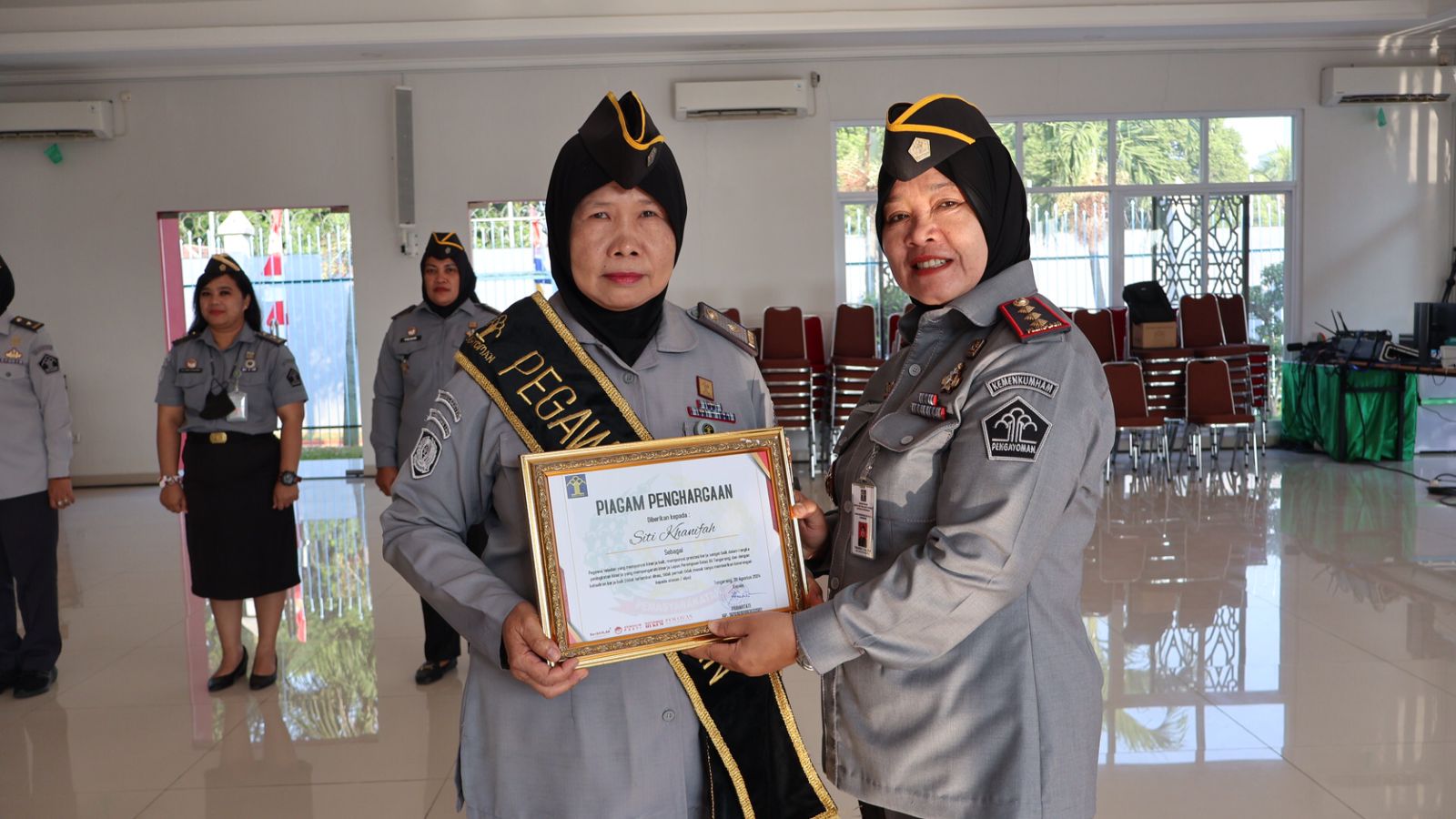 Penyerahan Penghargaan kepada Pegawai Teladan dilakukan pada saat apel pagi Pegawai. Kegiatan yang dipimpin langsung oleh Kepala Lembaga Pemasyarakatan Perempuan Kelas IIA Tangerang, Prihartati dimana pemilihan pegawai teladan berdasarkan proses pemilihan yang melibatkan seluruh pegawai melalui voting di WhatsApp Grup dengan mempertimbangkan beberapa aspek antara lain, Integritas, Komitmen, Kedisiplinan, Kerjasama dan Etika Kedinasan.