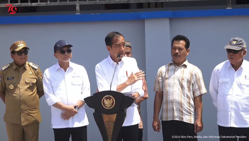 Presiden Joko Widodo (Jokowi) meresmikan Pasar Pasir Gintung yang telah direvitalisasi di Kota Bandar Lampung, Provinsi Lampung, Senin (26/08/2024). Proyek revitalisasi ini menelan biaya sebesar Rp38 miliar.
