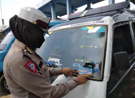 Untuk itu, pihaknya tidak hanya memberikan sosialisasi, tetapi juga turut membagikan masker. Bahkan petugaspun tak segan untuk membantu pengendara motor mengenakan maskernya serta pemasangan stiker pada kendaraan umum.