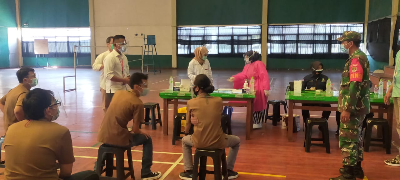 Babinsa Koramil 04/Cikupa Kodim 0510/Trs bersama tim medis Puskesmas Cikupa melaksanakan pemeriksaan kesehatan rapid tes kepada Karyawan PT. KMK Kawasan Cikupa Mas Desa Telaga Sari Kecamatan Cikupa Kabupaten Tangerang, Senin (26/10).