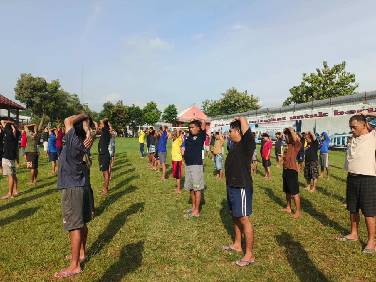 Purwokerto, 27 Januari 2026—Warga binaan Blok T3 Lembaga Pemasyarakatan Kelas IIA Purwokerto mengikuti kegiatan senam pagi yang dilaksanakan di lapangan lapas. Kegiatan ini merupakan bagian dari program pembinaan jasmani yang rutin dilaksanakan guna menjaga kesehatan dan kebugaran warga binaan.
