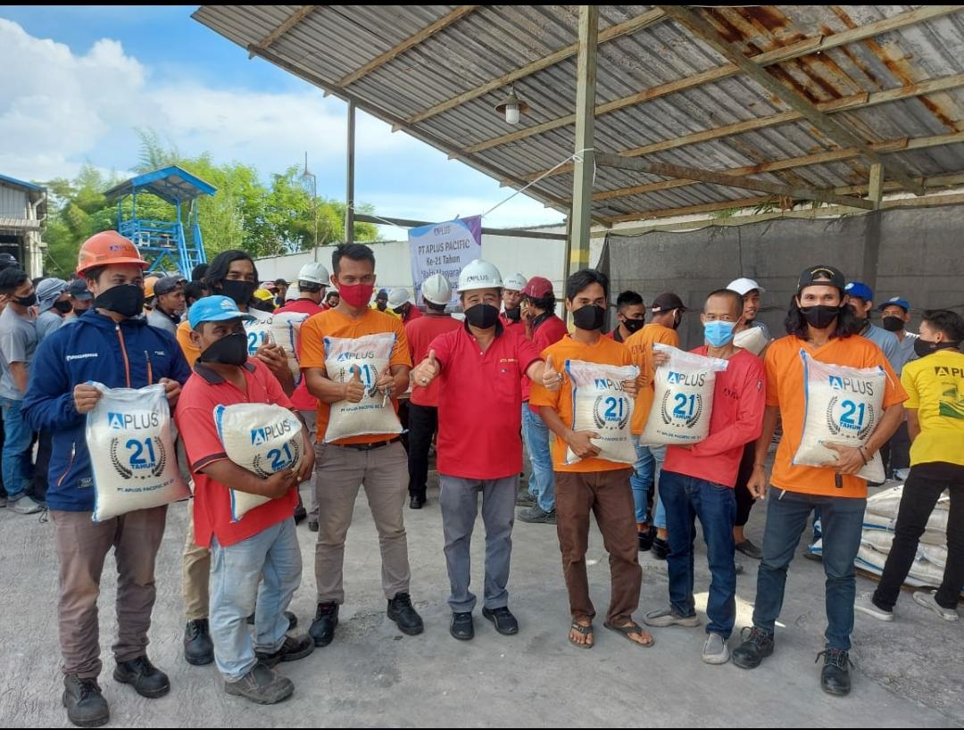 ” Pembagian paket beras ini merupakan salahsatu bentuk kepedulian dan perhatian PT.Aplus kepada karyawan dan warga yang tinggal di sekitar lokasi pabrik PT.Aplus,” ungkap kepala pabrik PT. Aplus, Mulyadi, kepada Wartawan.