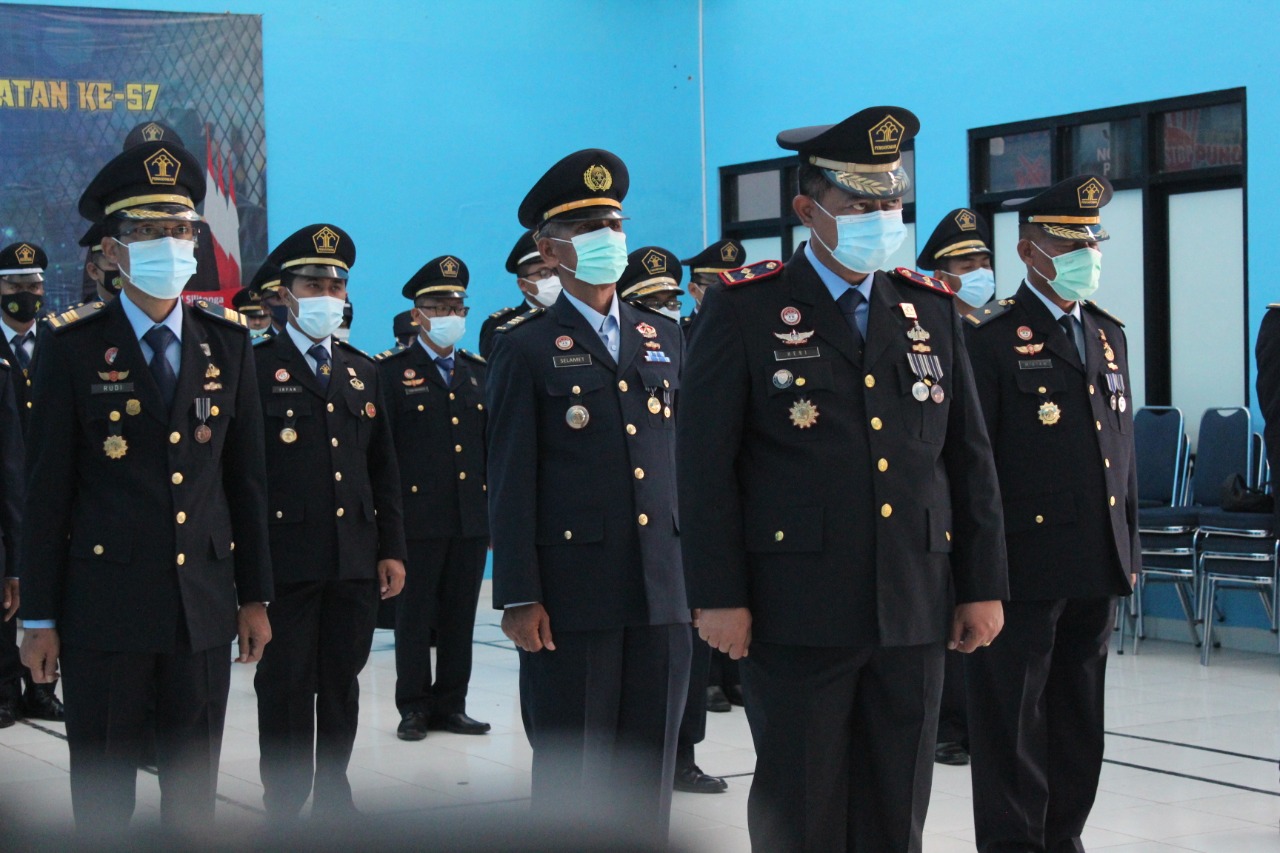 Upacara Peringatan Hari Bakti Pemasyarakatan ke-57 Secara Virtual di Lembaga Pemasyarakatan Kelas IIA Serang dilakukan di ruang Aula Lapas Kelas IIA Serang, kegiatan tersebut diikuti oleh Kepala Lapas Kelas IIA Serang, Heri Kusrita, Pejabat Struktural dan Petugas Lapas Kelas IIA Serang. Selasa (27/04/2021).