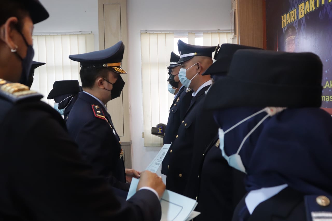 Rumah Tahanan Kelas IIB Serang Melaksanakan upacara peringatan Hari Bakti Pemasyarakatan ke-57 tahun 2021 secara virtual dan dilanjutkan dengan penyematan pangkat kepada 9 pegawai Rutan Serang.